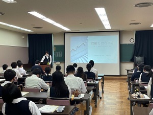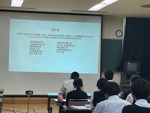 彦根工業高校建設科で設備業界の説明会を行いました(1年生) 2021/10/07 彦根工業高校建設科に在籍している1年生(40名)に向け、当協会の大崎恭平講師(大崎設備工業株式会社)を派遣し、設備業界説明会として、設備とは何か、どのような業界なのかなど業界の魅力を発信しました。
