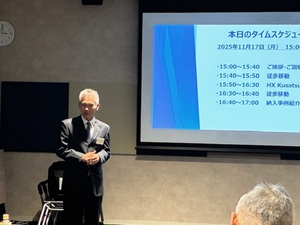 令和7年11月17日(月)15:00よりパナソニック(株)草津工場 「RE100実証施設 Panasonic HX Kusatsu」の見学を行いました。草津工場RE100実証施設は、2022年4月15日に開所され、RE100実証は世界初の試みとなる本格的に水素を活用する工場です。水素の利活用は、くらしのエネルギ―インフラ事業のさらなる拡大を目指して、脱炭素社会の実現に取り組んでおられます。